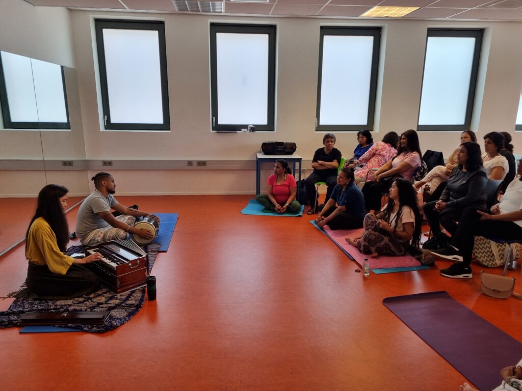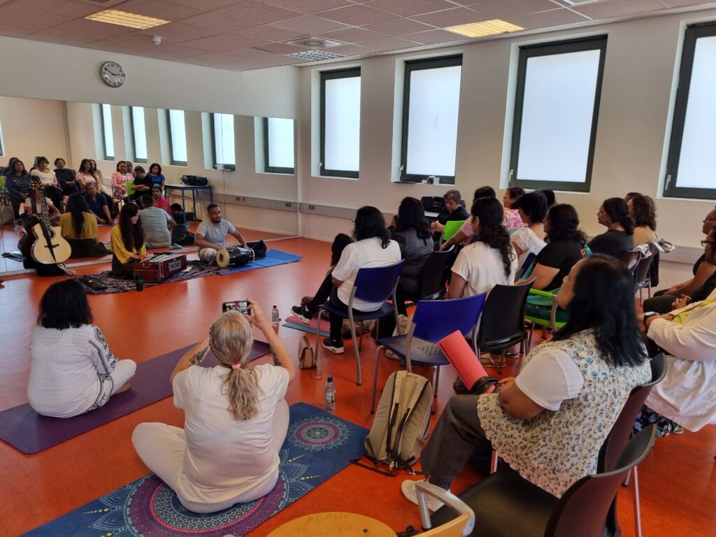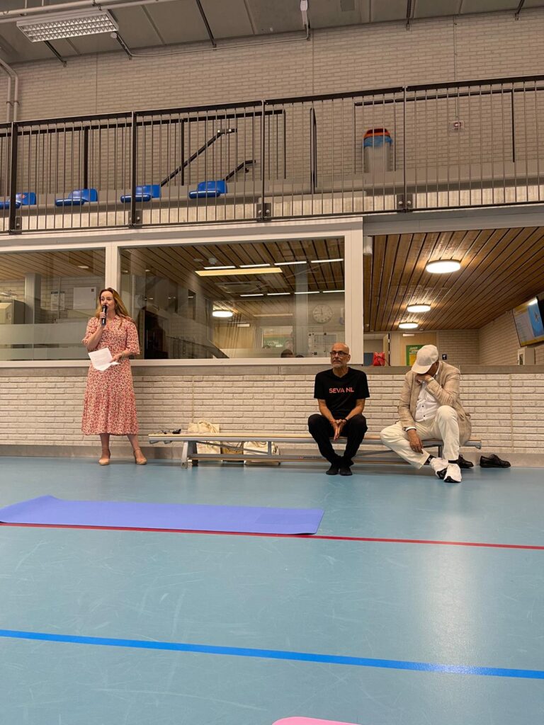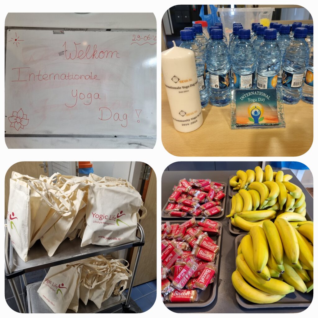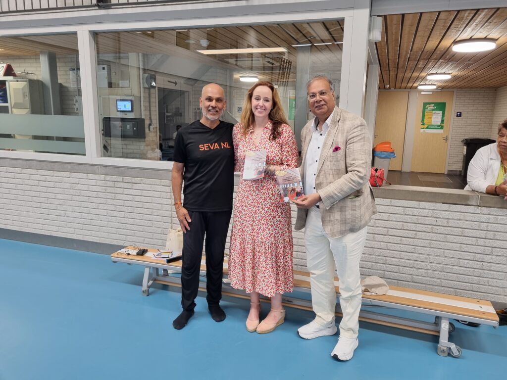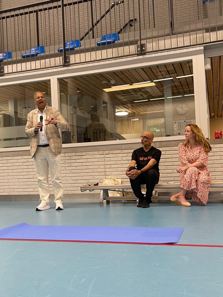 Op zaterdag 29 juni 2024 organiseerden we een Yoga evenement ter gelegenheid van Internationale Yoga Dag. Dit vond plaats in Sporthal Piet Vink in Den Haag van 11.00 tot 16.00 uur. Er werd ook stilgestaan bij 10 jaar Community Yoga in Den Haag. Dhr. Rabin S. Baldewsingh (Nationaal Coordinator tegen Discriminatie & Racisme) en mevrouw Marion Beaujean (stadsdeeldirecteur van Leidschenveen-Ypenburg) waren bij de opening aanwezig en namen een exemplaar van het gedenkboekje (‘10 jaar Community Yoga in Den Haag‘) in ontvangst. Daarna nam Yograj Premacharya het woord en vertelde wat over Community Yoga en gaf achtereenvolgens ook een yoga workshop. Na de lunchpauze met onder andere een lekker vegetarisch broodje en fruit begon workshop ronde 2 waar Janice Aliar een joints & glands sessie gaf en Reeshmi Chitan een stoelyoga sessie. De laatste workshop was voor Geoffrey de Jong met een sound bath sessie en Lakshman Kharagjitsing met een kirtan workshop. Bij vertrek kregen de deelnemers een leuke goodiebag mee. Het was een geslaagde dag met ruim 100 deelnemers en een enthousiast Seva team dat de dag in goede banen geleid heeft. Iedereen wordt bedankt voor zijn/haar aanwezigheid, ook de sponsoren worden van harte bedankt en we gaan van start met de voorbereidingen van een spectaculair Yoga Festival op 21 juni 2025! Graag tot dan! 😊🙏