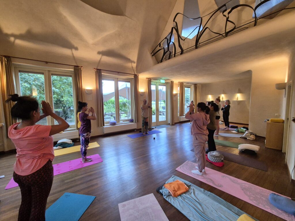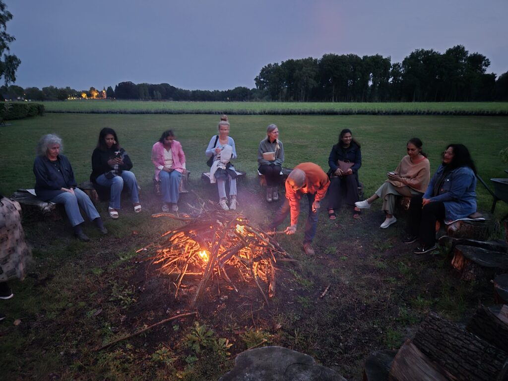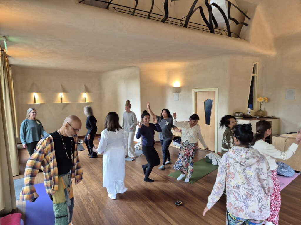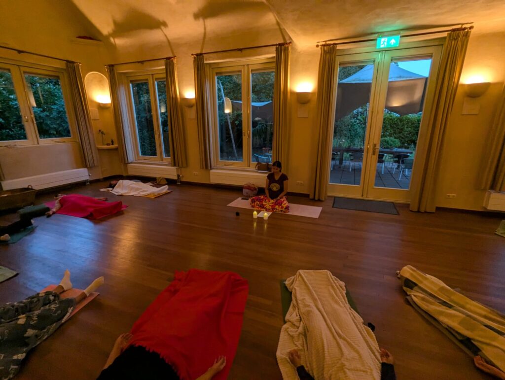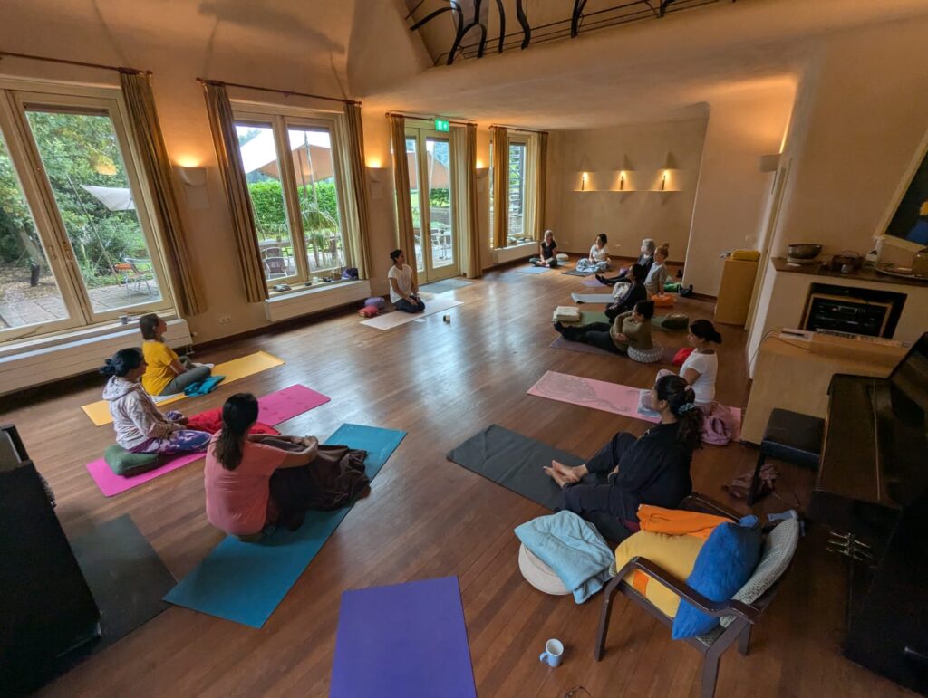 Van 19 t/m 21 september 2025 organiseerden Yograj en ik weer een Yoga en Ontspanningsweekend. Wederom was ‘t Zonnehuis in Loenen de locatie waar het weekend plaatsvond. Een prachtige locatie, een fantastische groep deelnemers, heerlijk verse en veganistische maaltijden en een gevarieerd programma. Het weekend stond in het teken van de overgang van de zomer naar de herfst. Een mooie boswandeling in stilte was onderdeel van het programma. Ook was er de gelegenheid om de sauna in te gaan en lekker af te koelen in een waterbad. Er waren verschillende yoga sessies (zoals yin yoga, yoga nidra, hatha yoga) en er werd een kampvuur gemaakt. De groep heeft ook een aarti ceremonie bijgewoond in een nabijgelegen ashram. Er is gedanst om het leven te vieren en er was een ‘bibliotheek-avond’ waarin er werd gesproken over één van de yoga klassiekers: de Bhagavad Gita. Kortom, een weekend waar de deelnemers hopelijk met een blij en ontspannen gevoel aan zullen terugdenken en waar fijne verbindingen zijn ontstaan. Hieronder enkele foto’s van het Yoga Weekend: