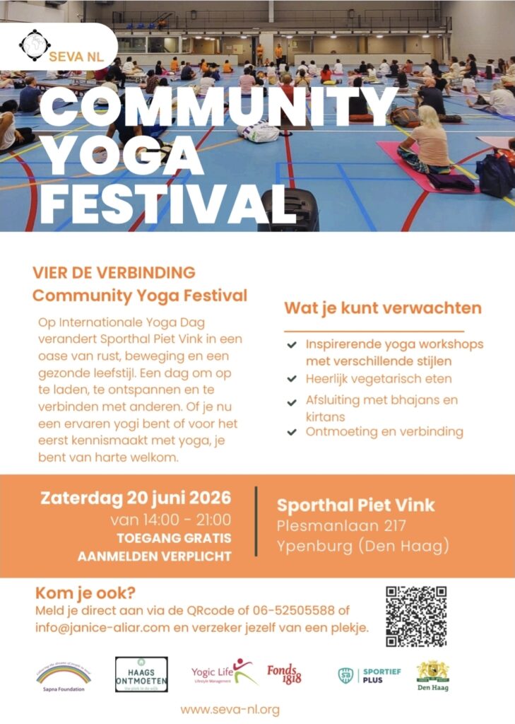 Op zoek naar rust, energie en een geweldige sfeer? Op Internationale Yoga Dag toveren we Sporthal Piet Vink om tot een oase van yoga, ontspanning en alles in teken van een gezonde leefstijl. Of je nu een doorgewinterde yogi bent of voor het eerst op de mat staat: je bent meer dan welkom!